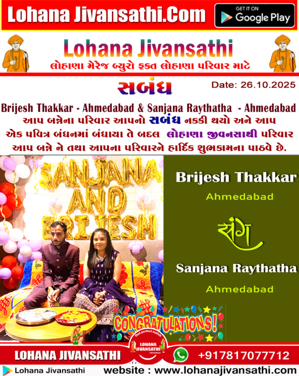 Many sons and daughters of the Lohana family are forced to marry into other castes as they do not get the right marriage purpose in time. This website and Lohana Jivansathi mobile application has been created by understanding the duty of service and humanity on the basis of profit and loss without taking money in the form of very small token for the purpose of making it useful to the society. Jay Jalaram.